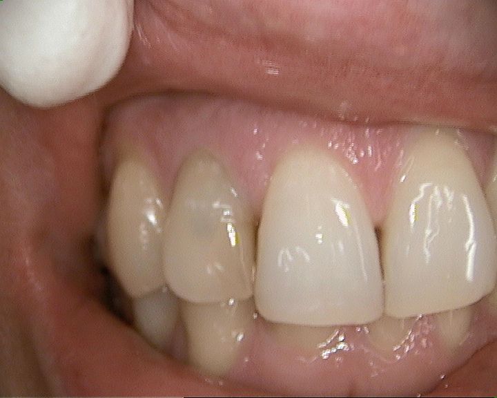 Von innen kommende Verfärbungen einzelner Zähne, z.B. nach Wurzelbehandlungen in der Front, sind gut durch ein "internes Bleaching" aufzuhellen. Dabei wird ein Bleichmittel für einige Tage in den Zahn eingelegt, bis die gewünschte Helligkeit erreicht ist. Nach einer Wartezeit von 2 Wochen kann der Zahn dann wieder dicht mit einer Kompositfüllung verschlossen werden.