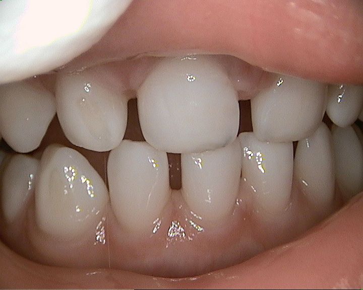 ![]() Nichts mehr zu sehen von der Karies - eine gelungene Füllung trotz kleinem Mund und kleinem Kind